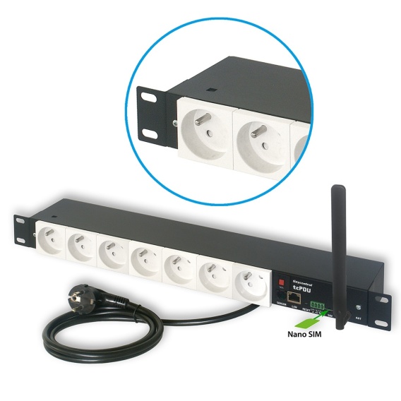 Listwa zasilająca w standardzie Rack 19 cali, wyposażona w 7 niezależnie zarządzanych gniazd podłączonych do napięcia sieciowego 230 V. Zarządzanie listwą może odbywać się za pośrednictwem wbudowanego serwera www lub protokołu SNMP lub MQTT przez fizyczny interfejs sieci Ethernet 10/100 Mb oraz wiadomościami SMS z autoryzacją hasłem, dzięki modemowi LTE.
